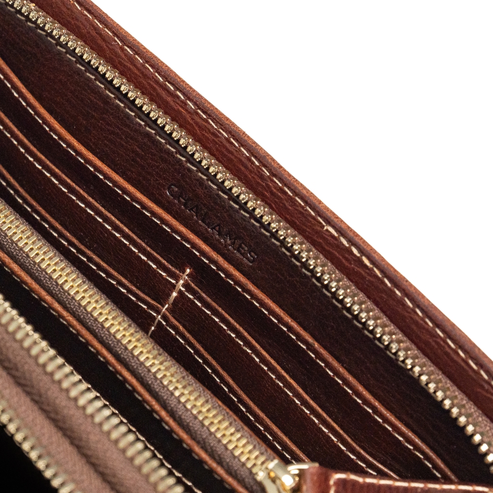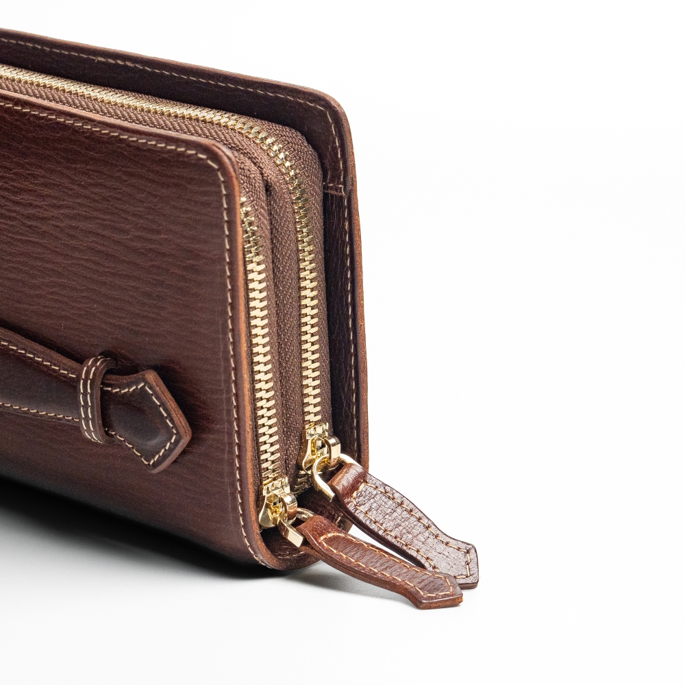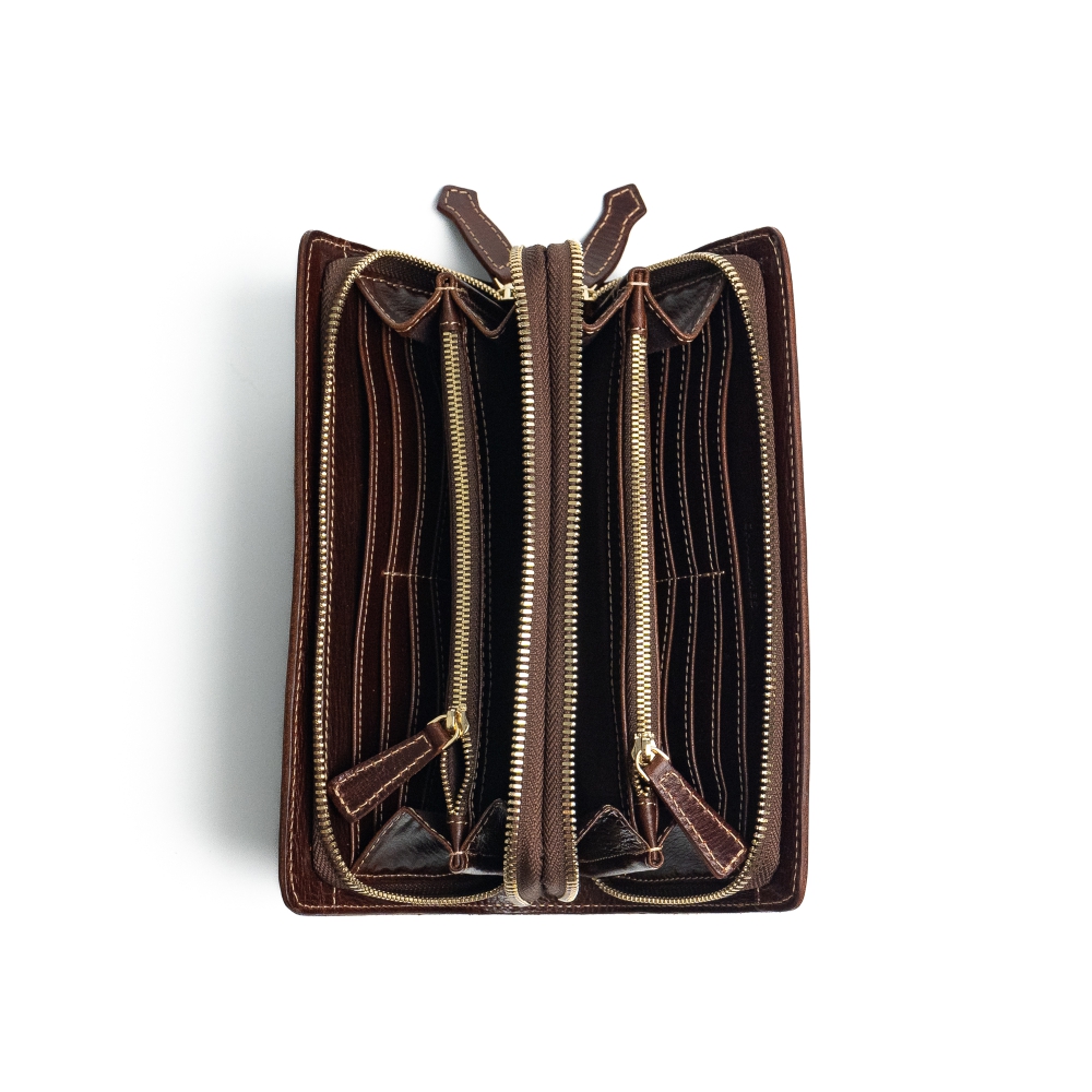 - Kết cấu: Gồm 2 ngăn riêng biệt, có khoá kéo sang trọng, đựng được các loại giấy tờ tiền mặt, thẻ,…