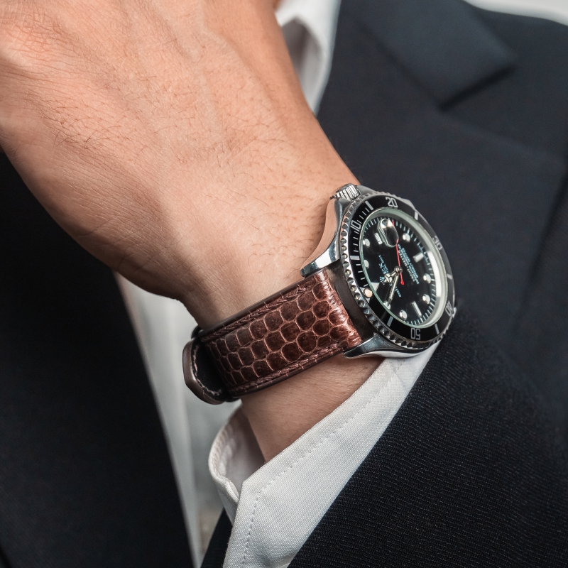 Dây đồng hồ da rắn biển thiết kế được may thủ công 100% tỉ mỉ, chau chuốt các chi tiết nhỏ từ thương hiệu Chalames.