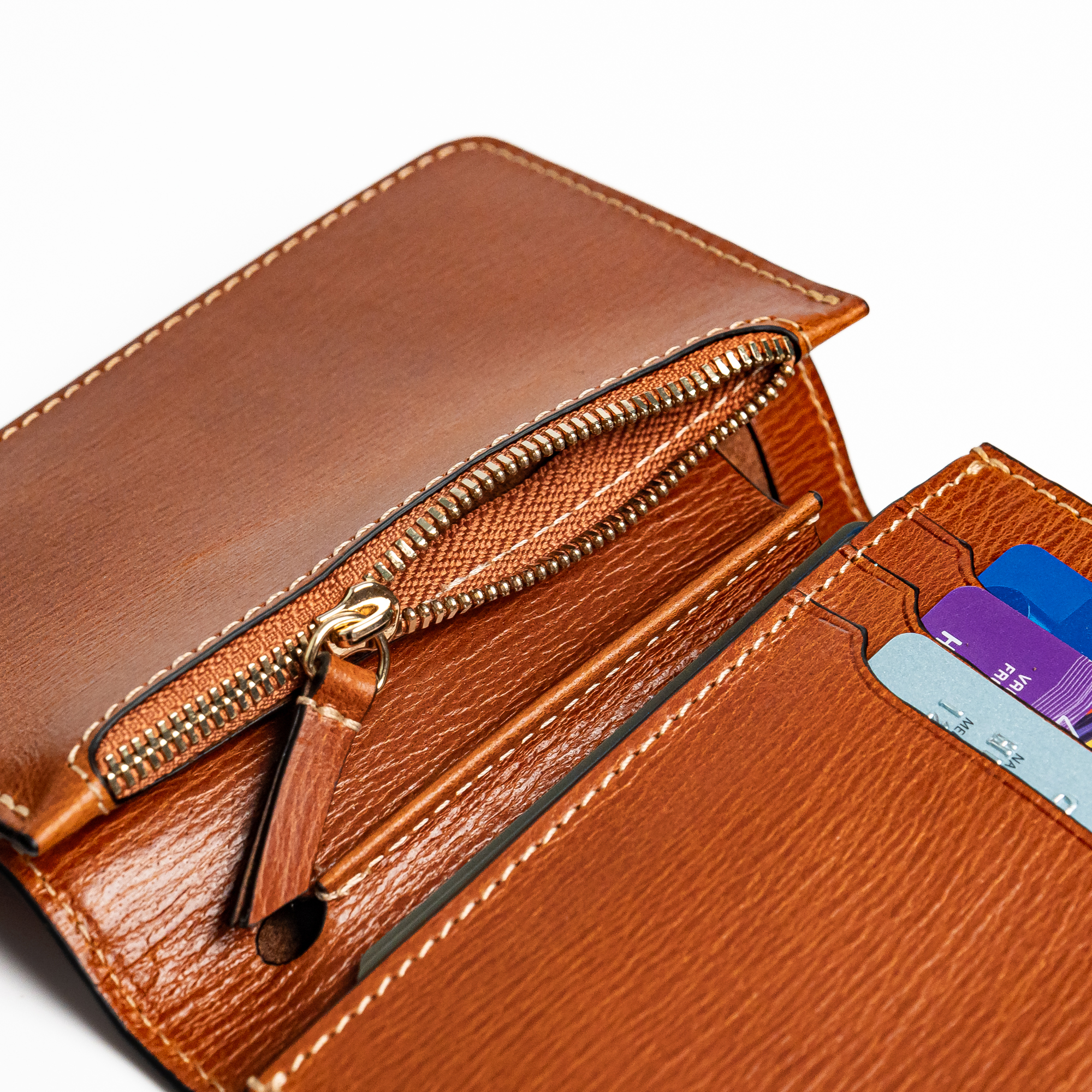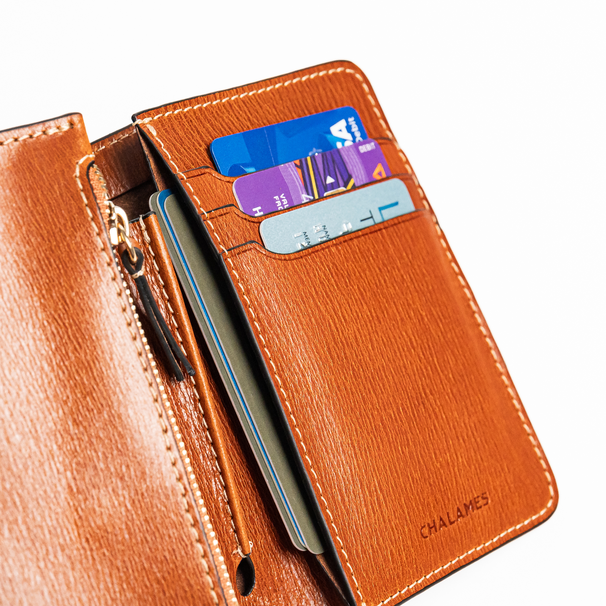 - Kết cấu: Gồm 1 ngăn lớn để tiền thẳng, 1 ngăn có khoá kéo, ngăn đựng thẻ card với sức chứa 15- 20 tờ tiền